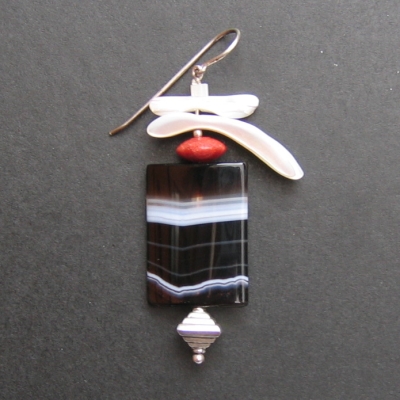 Ohrschmuck Silber Perlmutt, Schaumkoralle, gebänderter Achat