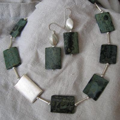 |  Kette und Ohrhänger925 Silber, Moosachat